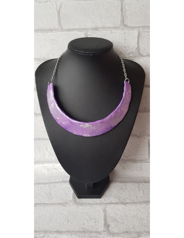 Ogrlica Janjin sija (Vijolična eleganca) je elegantna ogrlica v vijolični barvi, narejena iz polimerne mase, v kateri se lesketajo drobni delčki v srebrni barvi. Vzorec ji dajejo odtisi pravih vejic. Ogrlica se lepo prilega dekolteju in tako vaš videz naredi elegantnejši.