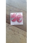 Uhani Janjin sijaj so ročno narejeni uhani. Narejeni so iz polimerne mase v čudovito pomladno roza barvi. V uhane so ujeti drobni delčki v srebrni barvi. Krasi jih edinstveni odtis vejic.