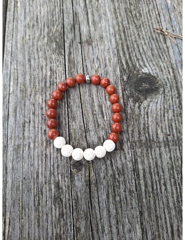 Zapestnica Janjin sijaj (rdeči jaspis in lava kamen).